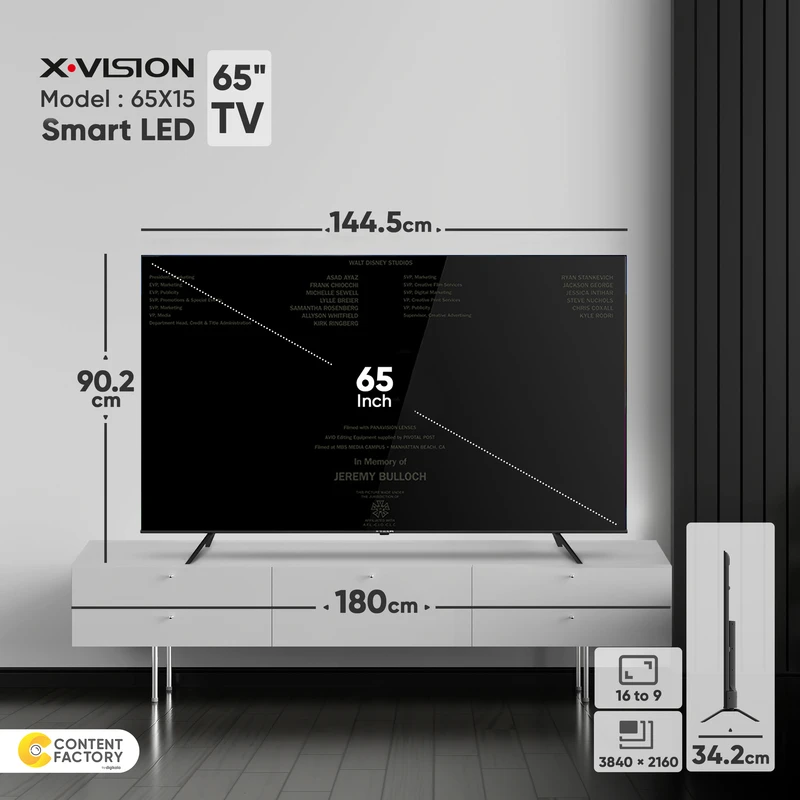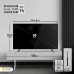 تلویزیون ال ای دی هوشمند ایکس ویژن مدل 65X15 سایز 65 اینچ با ارائه یک تصویر شفاف و باکیفیت در کنار امکانات متعدد، لحظات خوشی را هنگام تماشای تلویزیون در کنار خانواده و دوستان برای شما رقم میزند. صفحه نمایش این محصول از نوع IPS است که زاویه دید وسیعی را برای شما به ارمغان میآورد. این تلویزیون به لطف رزولوشن 3840×2160 و نسبت تصویر 16:9 انتخابی مناسب برای تماشای فیلم و سریالهای روز دنیا با کیفیت بالا است. تلویزیون مذکور با نرخ تازهسازی 50 یا 60 هرتز و مدت پاسخگویی هشت میلیثانیه، تصاویر را به صورت نرم و روان اجرا میکند. این محصول با استفاده از تکنولوژی HDR رنگها را با وضوح بالا و باکیفیت به تصویر میکشد. این تلویزیون هوشمند از رم با ظرفیت 1.5 گیگابایت و حافظه داخلی برابر با 16 گیگابایت بهره میبرد. تلویزیون ال ای دی هوشمند ایکس ویژن مدل 65X15 سایز 65 اینچ با ابعاد 1445x837x98 میلیمتر در حالت بدون پایه، و ابعاد 1445X342X902 میلیمتر با پایه، برای خانههای بزرگ و سالنها مورد استفاده قرار میگیرد و به لطف اندازه بزرگ خود، یک تجربه فراگیر و شگفتانگیز را برای شما رقم میزند. این تلویزیون با بلندگوهای 12 وات خود، عملکرد مناسبی را هنگام پخش صدا از خود نشان میدهد. از طرفی پشتیبانی از استاندارد صوتی Dolby Atmos هم یکی دیگر از ویژگیهای قابل توجه این محصول است.